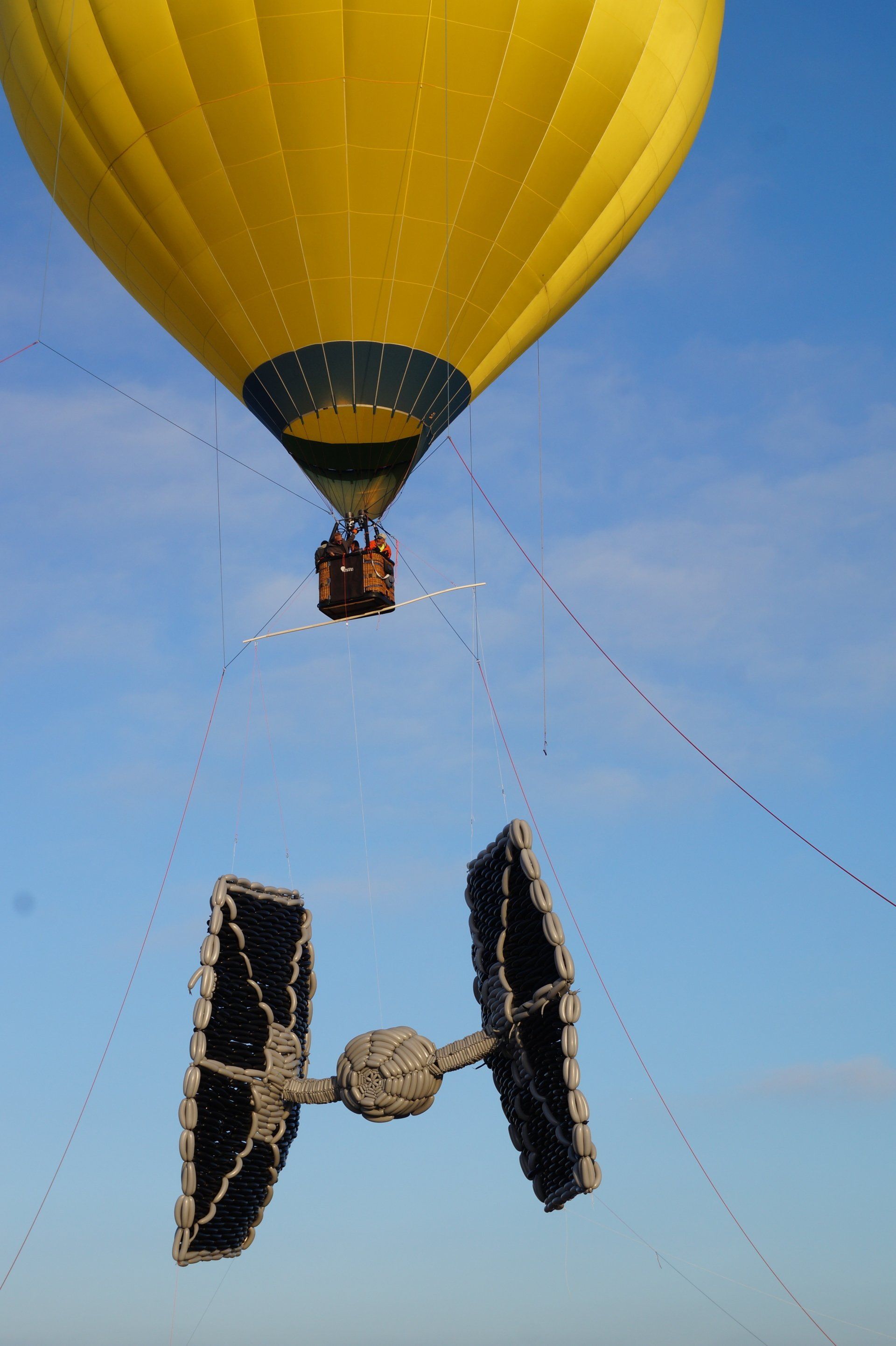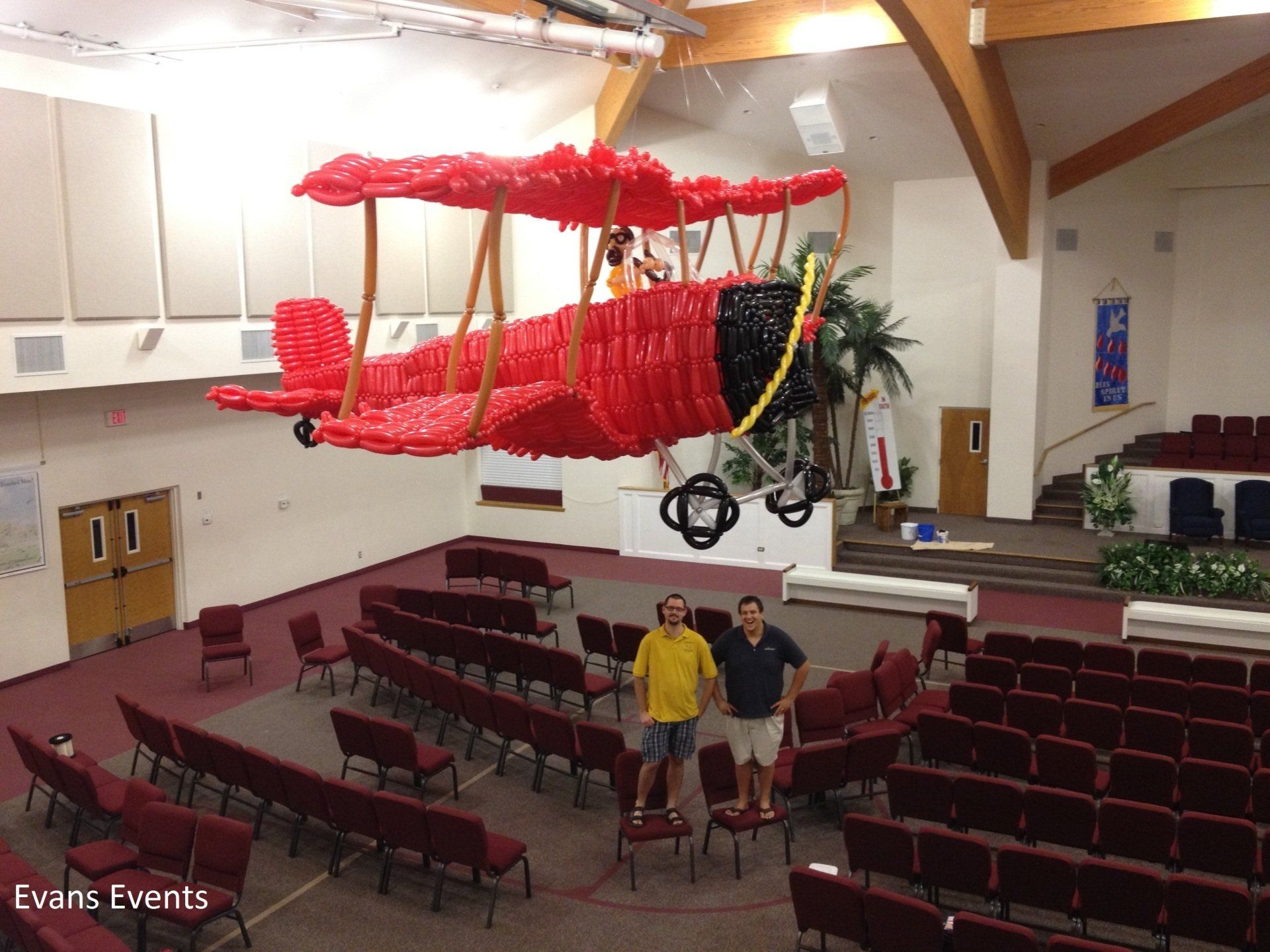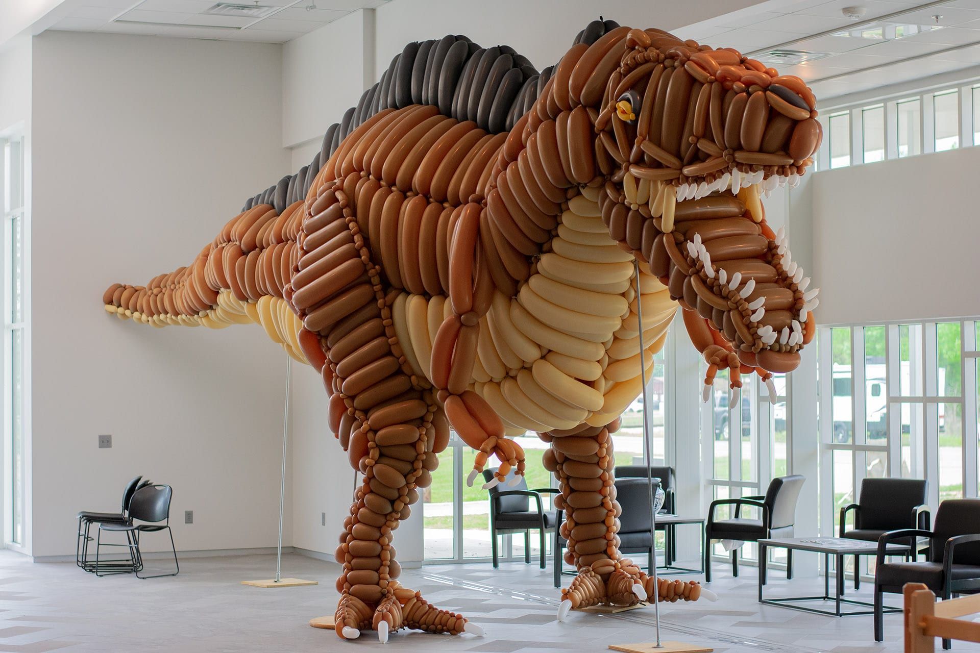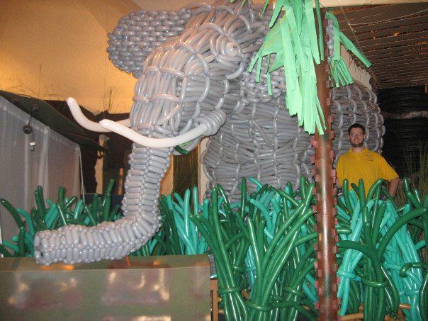 Brian’s largest project to date was creating an enormous dragonfly sculpture. This 88 foot sculpture at the Indiana State Museum took over 400 crew hours and broke the world record for the largest modelling balloon sculpture in the world (team.) Since then, Brian and Christina have created a full size TIE fighter and flown it from a hot air balloon, built a full-size dinosaur, and traveled all over the country creating enormous designs from airplanes to elephants, Vikings to teddy bears.