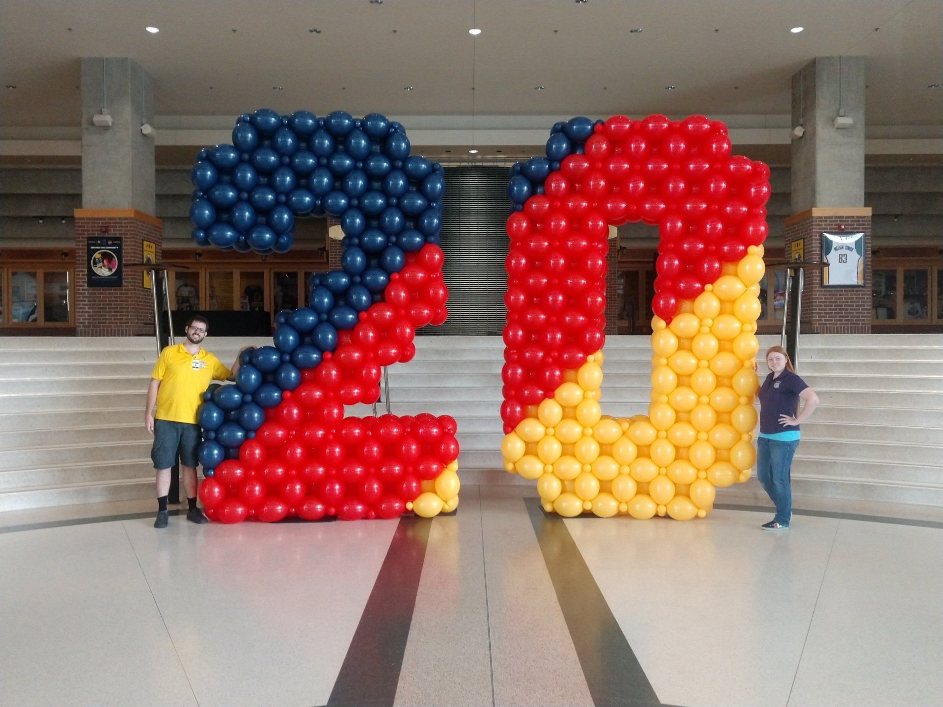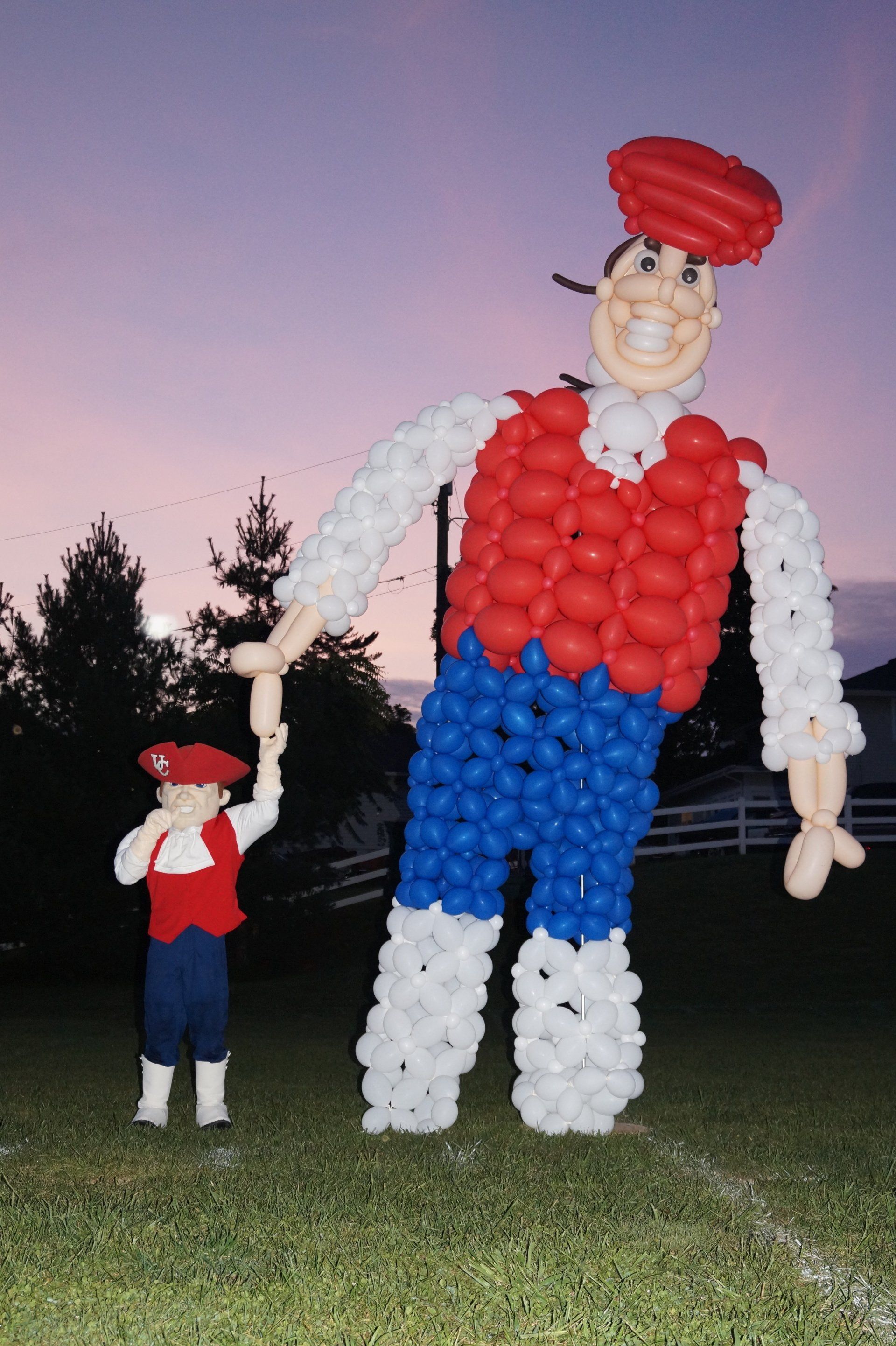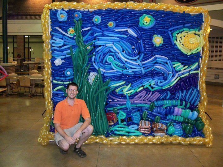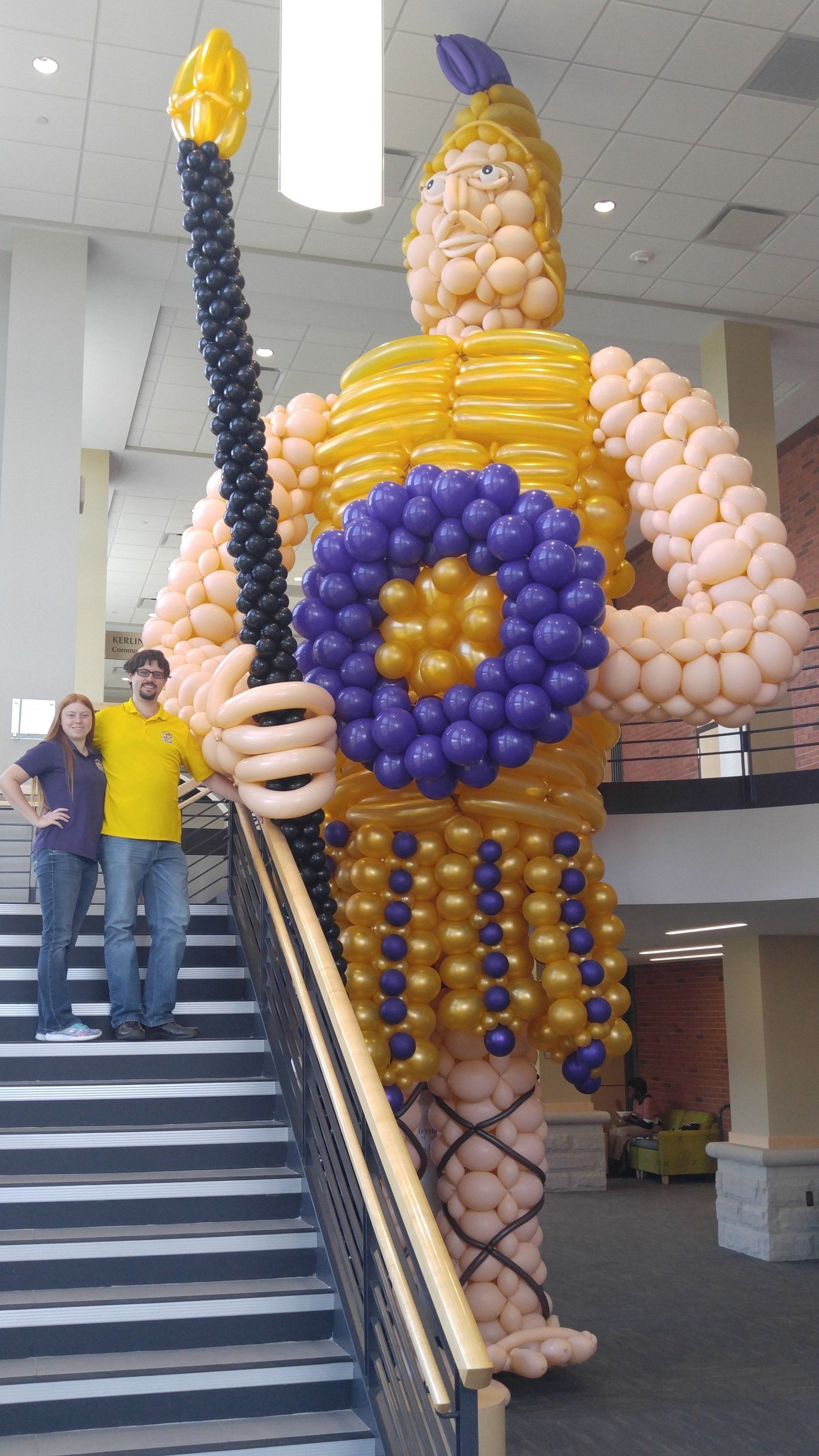 Every artist has a specialty that sets them apart from the pack. Brian’s signature style is creating enormous sculptures out of balloons. We call these crazy feats of stamina and engineering “Super-Sculptures.” Brian began making them as Vacation Bible School projects and gifts years ago. As he became more adept at designing sculptures and leading groups of volunteers, Brian started traveling the country, creating enormous installations for colleges, corporations and corporate events. He often travels to universities, working with student volunteers to create 15 foot tall college mascots for their big events, then stays to entertain afterward.